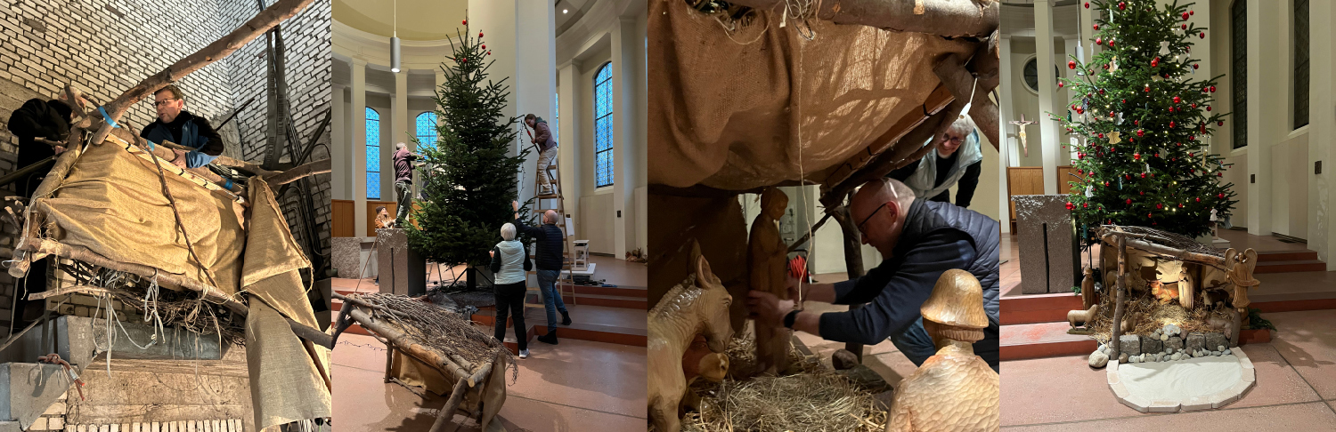 Mit vereinten Kräften und Improvisationstalent stehen nun wieder unser Weihnachtsbaum und die Krippe.