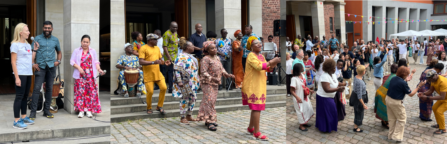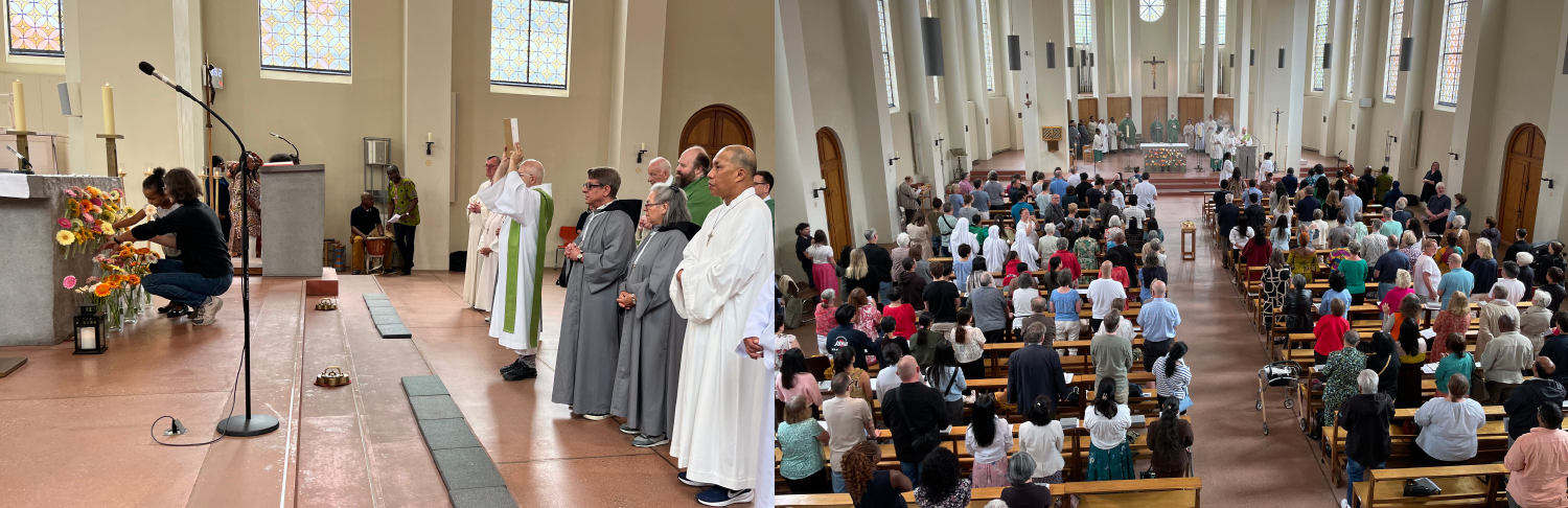 Christoph Weyer an der Orgel, der PKM-Grand-Choir unter der Leitung von James Cruz, das Vokalensemble ConSonanz und der Ephata-Togo-Chor sorgten für eine bewegende, ja mitreißende musikalische Stimmung. Die Samaritaines brachten sich in die Liturgie ein, mit ihrer farbenfrohen tänzerischen Gabenprozession. Ein lebendiger, bunter und fröhlicher Gottesdienst ganz à la Kleiner Michel.