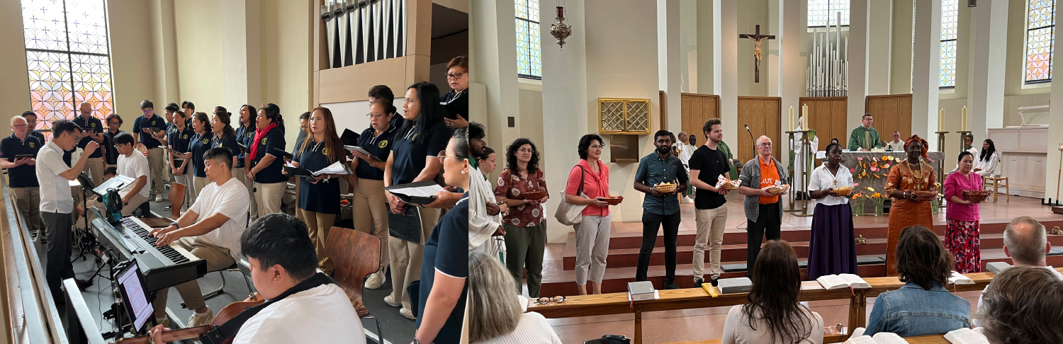 Am 18. Mai war es so weit. Ein gutes halbes Jahr hatten sich 23 Kinder der internationalen deutschsprachigen und der philippinischen Gemeinde zusammen mit ihren Eltern und Geschwistern auf die Erstkommunion vorbereitet. Im Gottesdienst war es die Lesung aus der heiligen Offenbarung, die ihm sein Thema gab: "Ein neuer Himmel und eine neue Erde". Pater Philipp Görtz SJ sprach in seiner Predigt die Kinder und die Erwachsenen gleichermaßen an: "Gott hat einen Traum von unserer Welt – dass Frieden herrscht. Und Gott hat einen Traum von einer jeden und einem jeden von uns: Dass wir einander lieben. Dass wir einander annehmen, auch wenn wir verschieden sind. Dass wir einander helfen, wenn jemand traurig oder allein ist. Dass wir teilen, wenn jemand zu wenig hat." Ganz dicht standen beim Hochgebet die Kinder um den Altar und empfingen bei der Kommunion mit sichtbarer Freude den Leib Christi aus den Händen von Pater Fabian Loudwin SJ. Am Ende des feierlichen Gottesdienstes wurde den Katechetinnen, Teresa Boese, Angela Moeller und Irene Samonte-Padilla herzlich gedankt. Sie gehörten mit zu dem Team, das die Kinder und Familien in 15 Gruppenstunden und an sechs Familiennachmittagen vorbereitet hatten. Am Tag drauf zeigte sich, dass sich dieser Aufwand mehr als gelohnt hatte: In großer Schar trafen sich alle in Sankt Theresien zur Zweitkommunion, feierten noch einmal miteinander heilige Messe und hatten dann Zeit zum Spielen, Grillen und ganz viel zum Erzählen. Denn das ist mit das Wichtigste, was wir alle miteinander erfahren haben: Wir sind Erzählgemeinschaft, mit Jesus gemeinsam unterwegs – "Du zeigst mir den Weg zum Leben!“